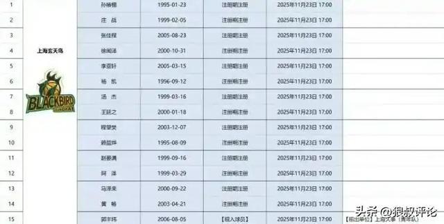 北京时间11月23日,《东方体育日报》记者薛思佳报道,NBL新军上海玄天鸟球员名单流出,前CUBA全明星球员、百万网红球员赖益烨以及前CBA球员汤杰在列。